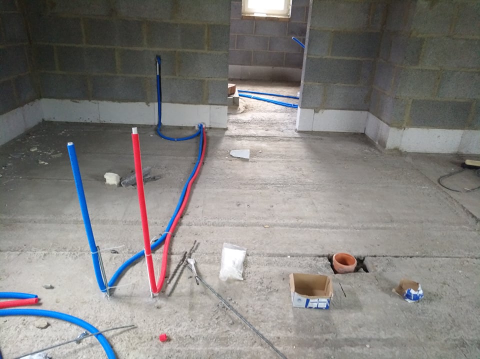 Le lundi, arrivée des chauffagistes - plombier pour l'installation de la tuyauterie chauffage et arrivée des eaux. 3 jours suffiront à terminer la première phase. Ils reviendront lorsque l'isolation au sol du rez de chaussée sera placée, pour mettre en place le chauffage par le sol. Et ensuite, lors de la dernière phase, pour le placement des...