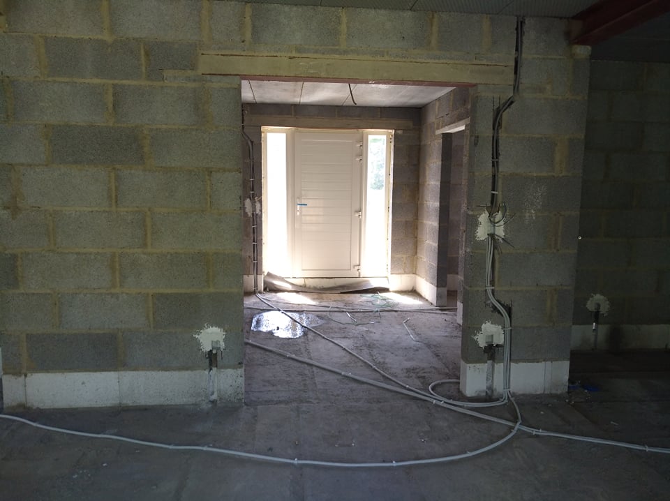 Le Dimanche, à notre grande surprise, une camionnette est garée devant la maison. Les ouvriers qui ont réalisé les cloisons sont de retour pour réaliser les finitions !