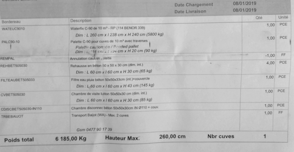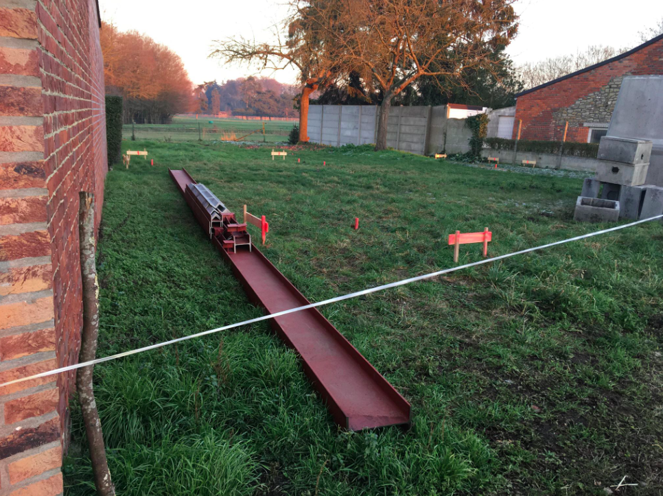 Nous nous chargeons donc de faire ce contrôle d'implantation "nous-même". Le lundi qui suit, l'employé de la commune se rend donc sur le terrain pour le contrôle d'implantation (le 21/01/2019). Le même jour, nous constatons la livraison d'une poutre HEA.