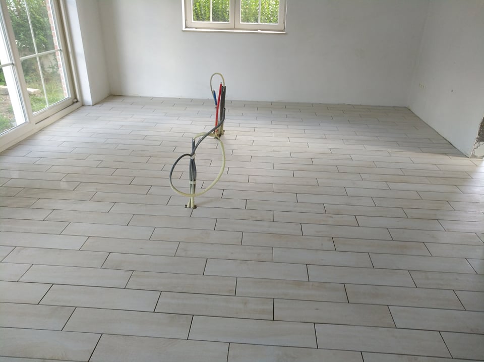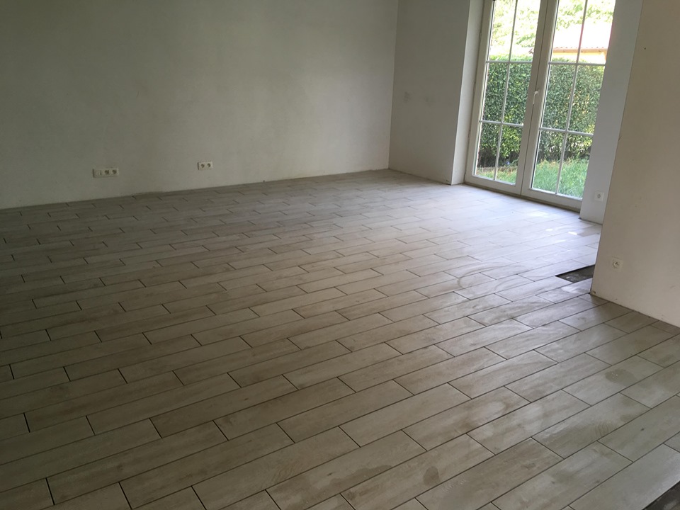 Les travaux se poursuivent et le Lundi 26/08, ils réalisent les joints du carrelage. Il faudra que l'on mettre les portes pour qu'ils puissent faire le serrage plinthes.