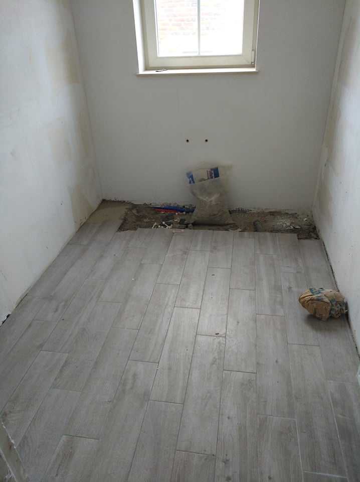 Pendant que les carreleurs s'occupent, nous nous occupons du receveur de douche avant qu'ils ne carrellent la salle de bain, pour que tout soit fait correctement.