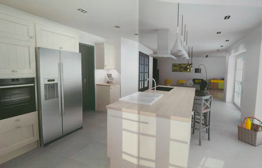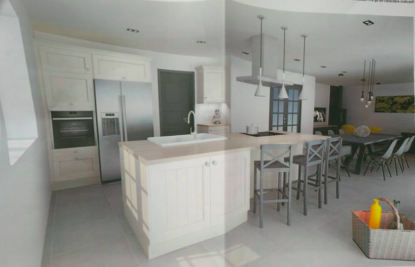 Lors de notre signature pour la mission d'étude avec Maisons Baijot, le commercial avait fini par nous convaincre en nous offrant une cuisine. Nous avions choisi entre plusieurs propositions (sur base d'une photo), aucune ne convenant à mon épouse. Après discussions avec le commercial, celui-ci explique que c'est une cuisine qui pourra être modifiée, le surcoût étant à nos frais et que ce sera "à voir avec le cuisiniste".