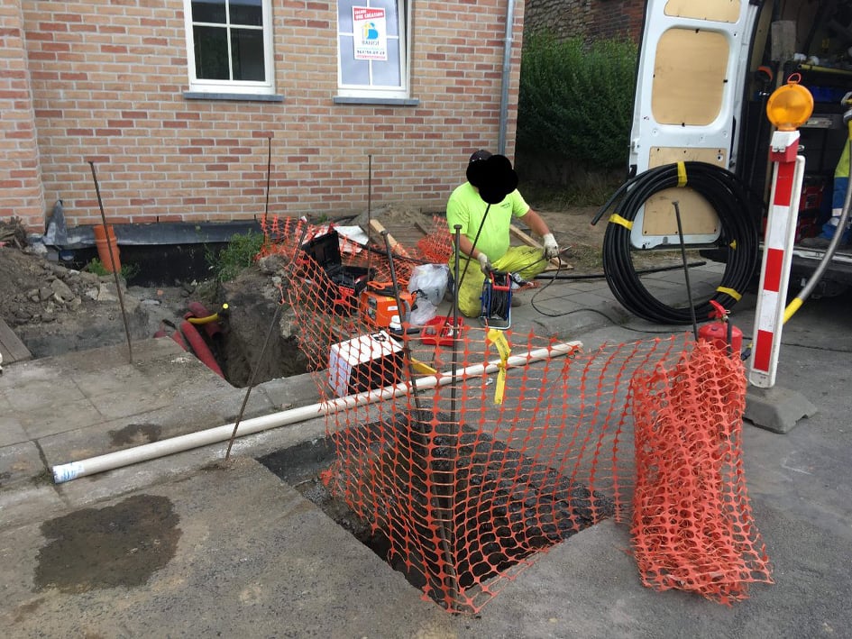 Le même jour, le raccordement ORES a lieu. Ils étaient déjà venu la veille pour réaliser les tranchées sur la voie publique.