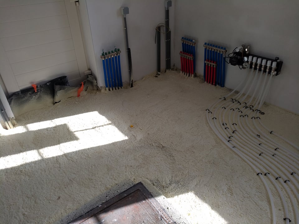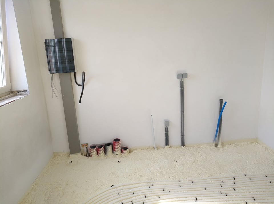 Chape isolante, chauffage par le sol et suite de l'électricité