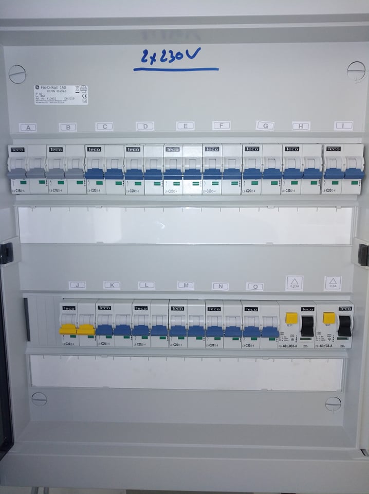 Durant les congés du bâtiment, l'électricien repasse pour placer la sonnette et mettre les caches sur les prises et interrupteurs. La réception électrique a lieu le 29/07. Il nous remet le jour même le document à présenter à ORES.