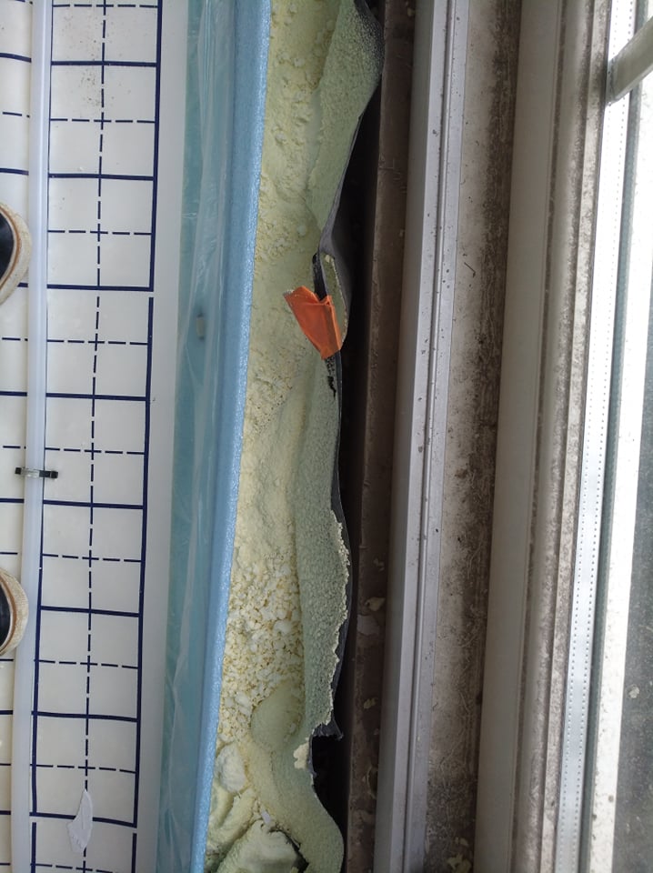 Nous remarquons que l'isolant au sol n'est pas bien positionné : il n'est pas tout à fait contre le châssis. Nous recevons la réponse suivante du chef de chantier :