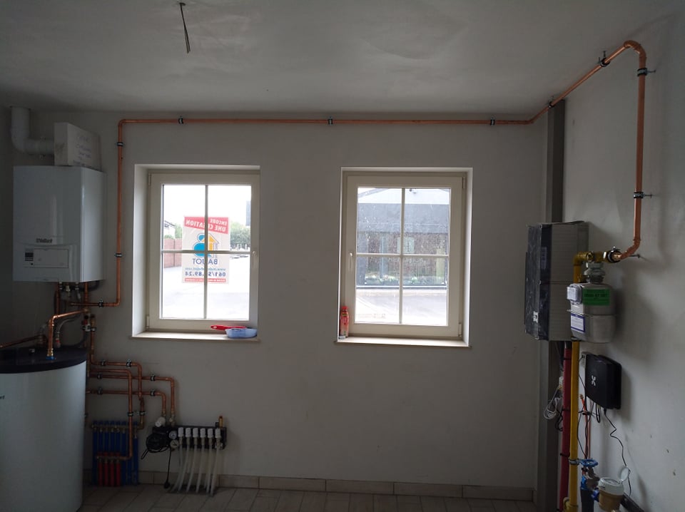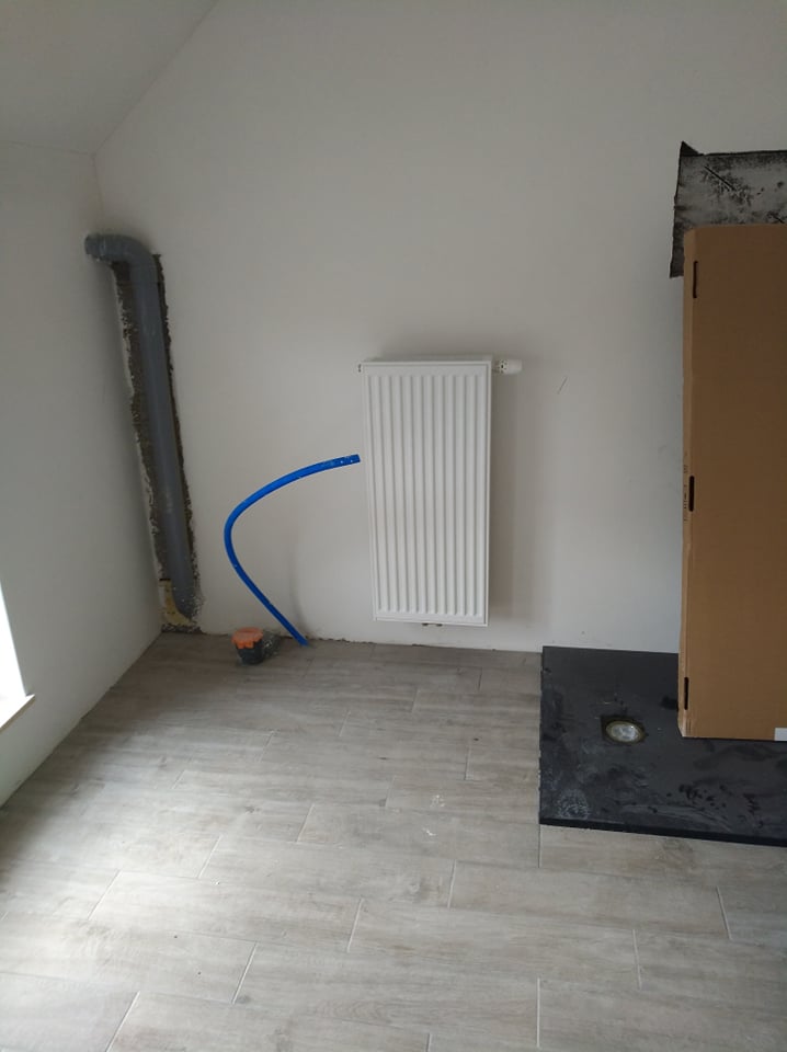 Il est prévu qu'il revienne le mardi pour terminer le travail et installer les radiateurs en eau (nous avons le chauffage par le sol en bas).