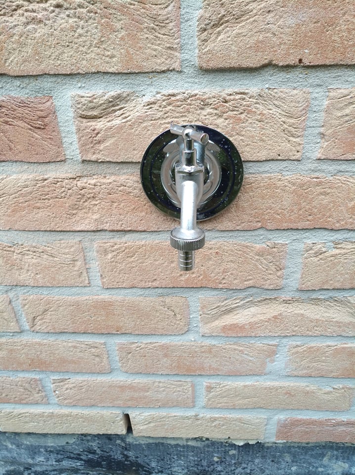 Il a aussi installé le robinet extérieur. Par contre, il n y a pas de robinet intérieur pour éviter le gel.
