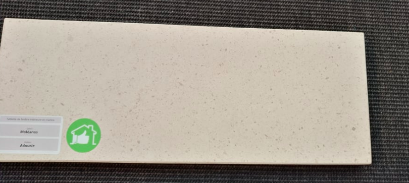 Le choix est assez rapide. Nous avons 5 tablettes en premier choix. Nous optons pour du beige "Adoucie" (= mat).
