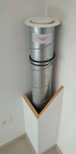 Nous disposons d'une ventilation mécanique contrôlée dans la maison. Il y aura donc une gaine visible dans certaines pièces (buanderie et chambres). Je pensais qu'elle passeraient dans les combles, mais ce n'est pas possible étant donné que les combles ne sont pas isolées.
