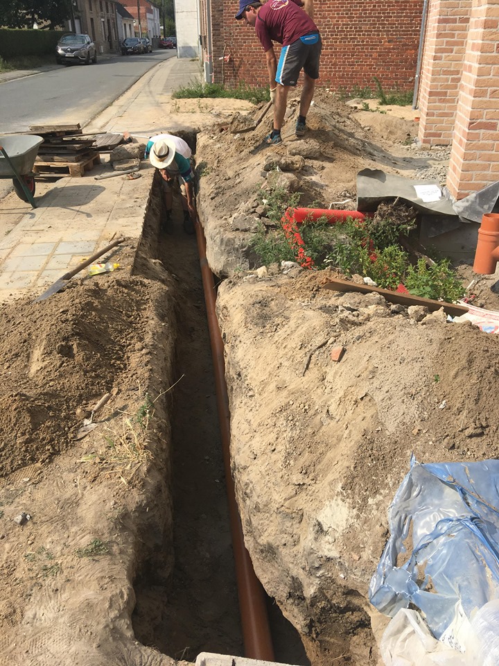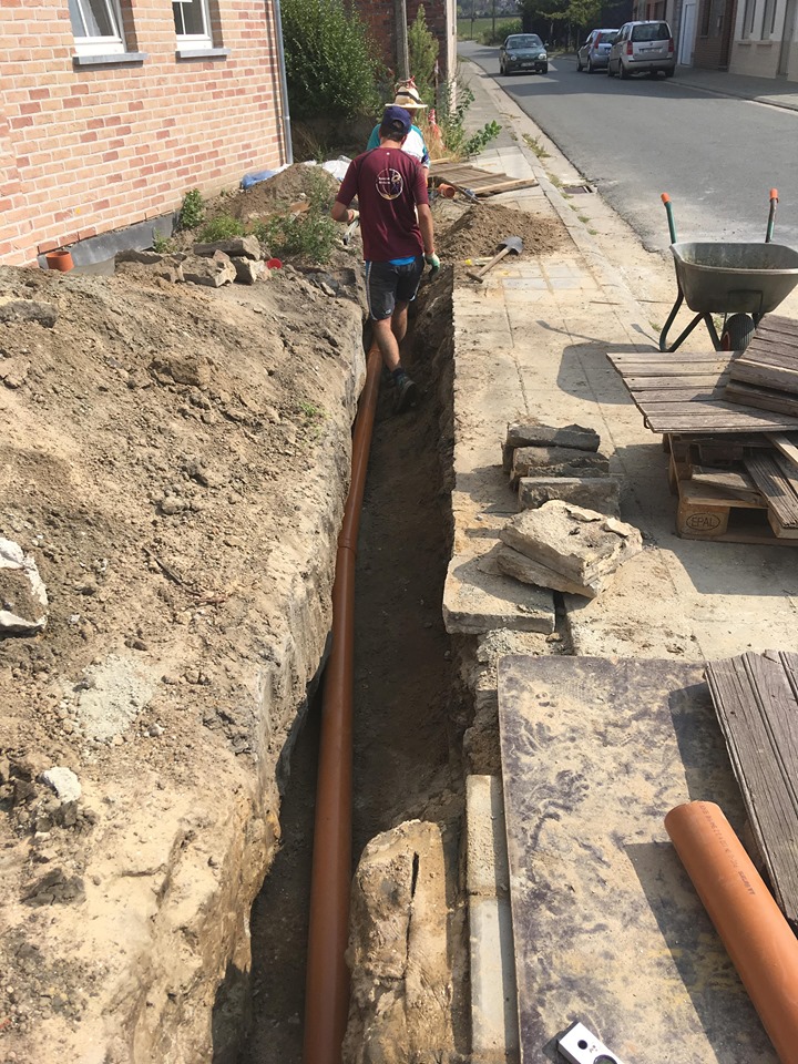 Baijot ne s'est pas chargé de la connexion entre trop plein de citerne et égouts. Ce n'était pas compris dans l'offre. Nous nous en sommes donc chargé nous même.