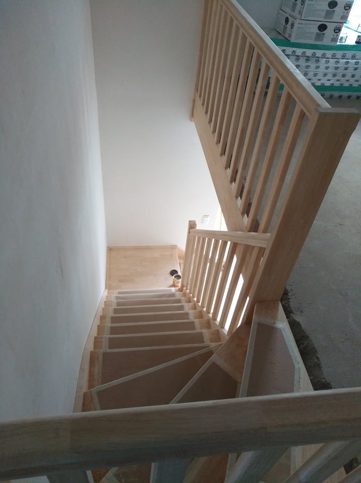 Nous nous rendons dans la maison le Lundi à 19h, et les menuisiers terminent le travail. Ils allaient seulement mettre la mousse de polyuréthane entre l'escalier et le sol de l'étage.