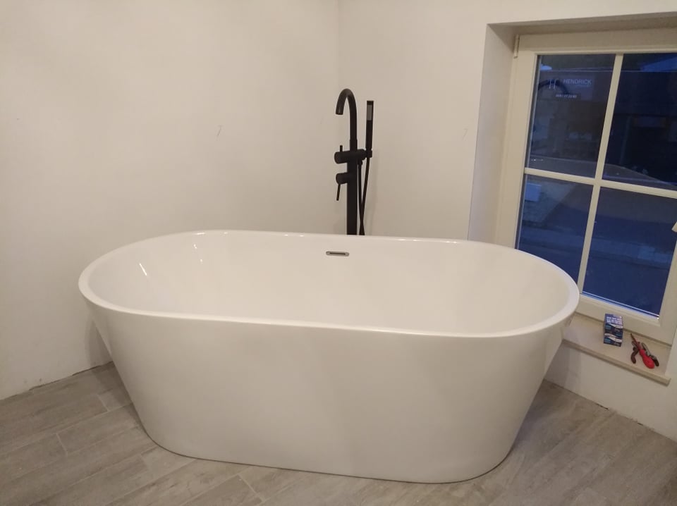 La réalisation des sanitaires est une grosse partie de notre travail dans la maison. Il comprend : la salle de bain parental (carrelage mural, douche à l'italienne, bain en ilôt, double vasque à poser, toilette suspendue). La réalisation d'étend sur plus d'un mois, un peu tous les jours.