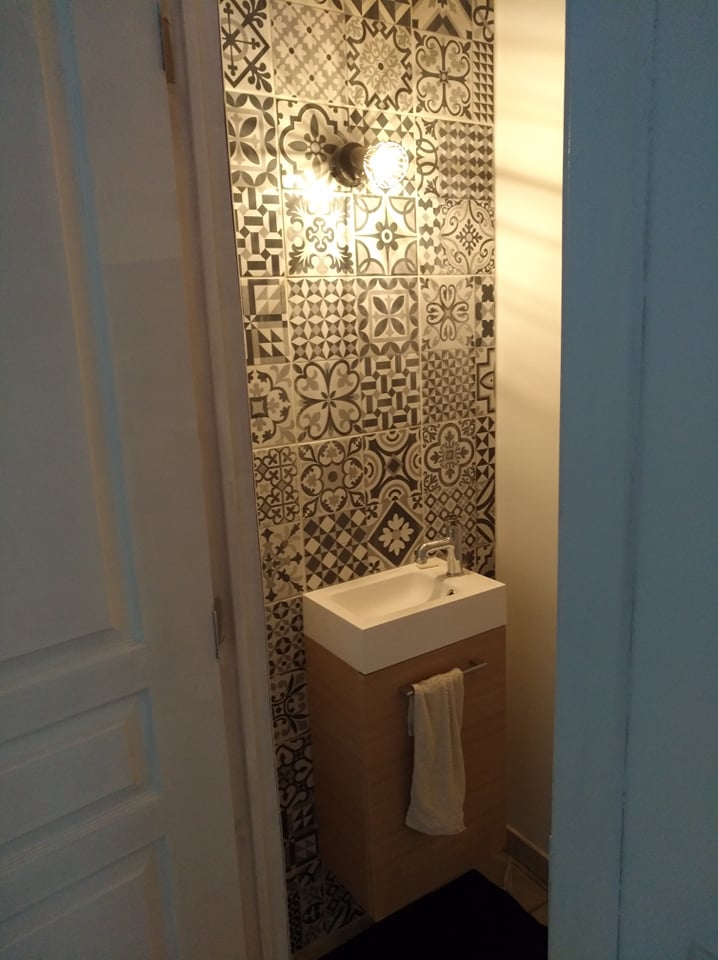 A l'heure où j'écris ces lignes, il nous reste encore à appliquer un enduit effet béton sur les murs de la salle de bain, mais également à réaliser la petite salle de bain que nous laissons en attente pour le moment.