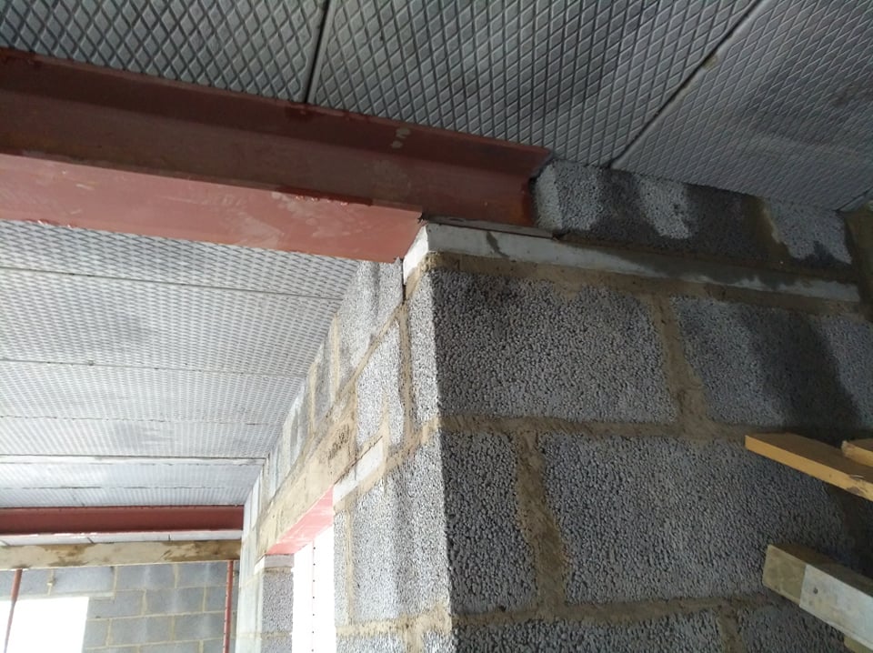 La poutrelle étant plus large que le mur d'appuis, elle ne peut que dépasser, d'un côté comme de l'autre. C'est pourquoi les habillages doivent se poursuivre sur le mur jusqu'au bout du point d'appuis