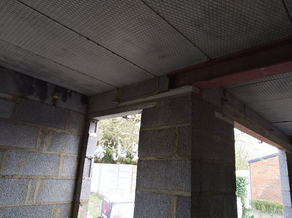 Nous remarquons plus tard que le mauvais positionnement de la poutre nous pose des problèmes pour un habillage correcte. (Cfr article "habillage des poutres métalliques").